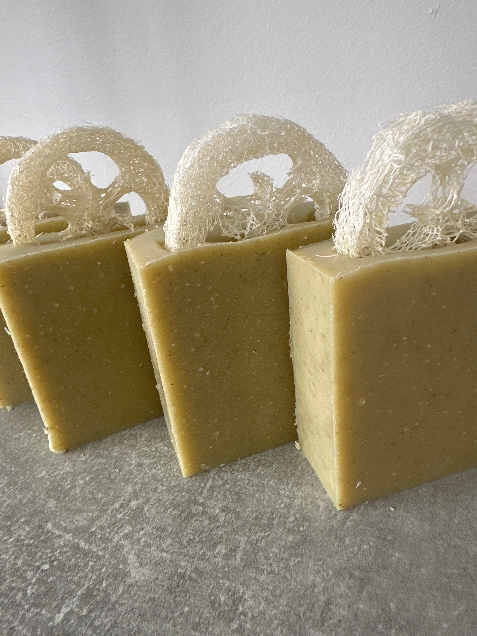 Ingredients: Australian olive oil, coconut oil, ricebran oil, rspo certified palm oil, shea butter, cocoa butter, organic castor oil, lime essential oil, dead sea mud, loofah